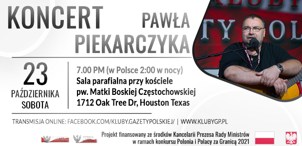 HOUSTON (TEXAS) | ZAPROSZENIE na spotkanie i koncert z Pawłem Piekarczykiem 23.10 – 7.00 PM (w Polsce 2:00 w nocy)