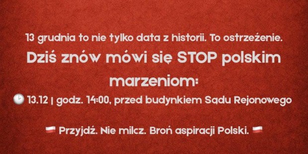 INOWROCŁAW | ZAPROSZENIE 13.12 – Zgromadzenie w obronie polskich aspiracji i marzeń
