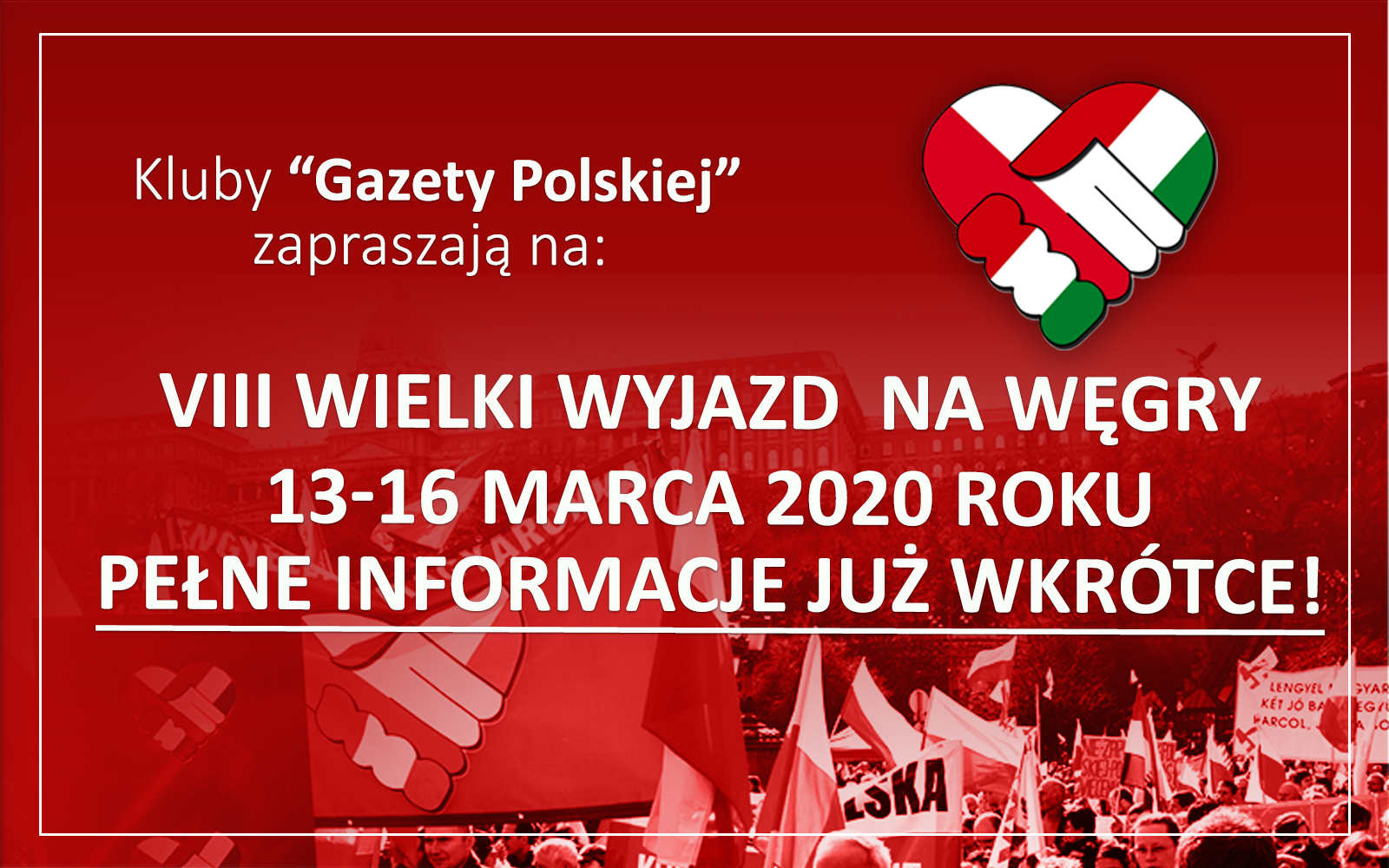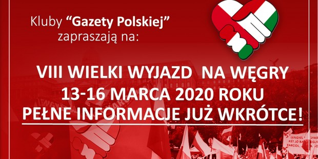 Już po raz ósmy Kluby „Gazety Polskiej” organizują Wielki Wyjazd na Węgry! Kilkudniowe wyjazdy do przyjaciół, na których zawsze mogliśmy liczyć, są już niemal tradycją. Razem z naszymi „bratankami” będziemy uczestniczyć w ich narodowym święcie.