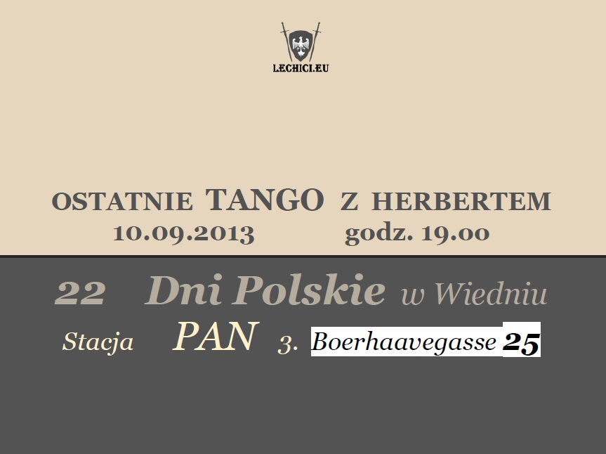 Czytaj więcej →Wiedeń – Ostatnie Tango z Herbertem – 22 Dni Polskie w Wiedniu, 10 września, g. 19, Stacja Pan 3. Boerhaavegasse 25.