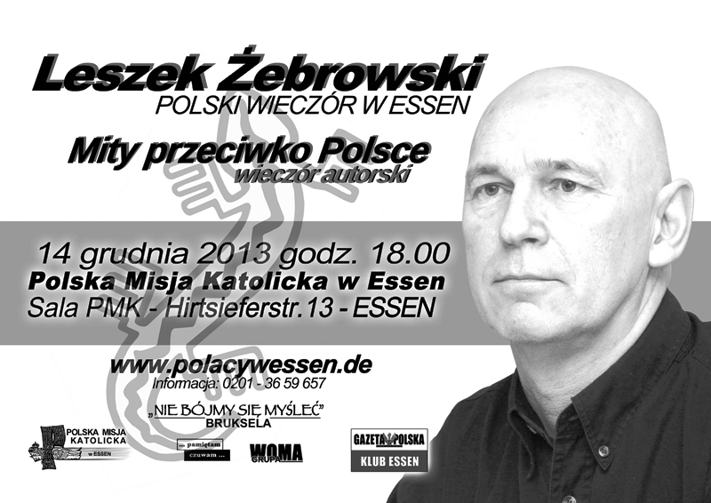 Czytaj więcej →Essen – „Polski Wieczór w Essen” – spotkanie z Leszkiem Żebrowskim, 14 grudnia, g. 18, Polska Misja Katolicka, Hirtsieferstr. 13, 45143.