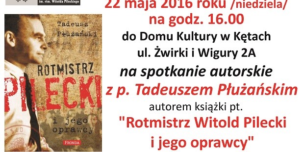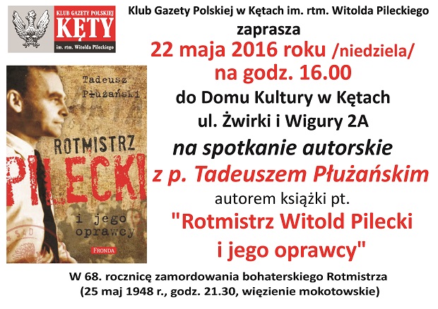 Kęty – spotkanie z Tadeuszem Płużański autorem książki pt.” Rotmistrz Witold Pilecki i jego oprawcy”, 22 maja, g. 16, Dom Kultry, ul. Żwirki i Wigury 2A.