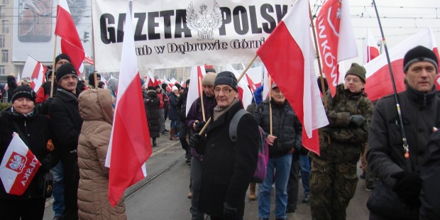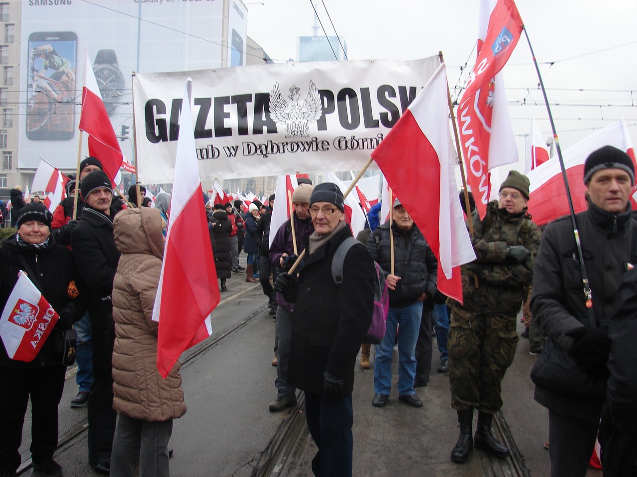 Klub Gazety Polskiej z Dąbrowy Górniczej brał udział w Marszu Niepodległości zorganizowanym przez środowiska narodowe w Warszawie. To te środowiska patriotycznej młodzieży przywróciły tak uroczysty charakter tego Święta. W poprzednich latach, za czasów rządów PO-PSL nie dane im było spokojnie świętować. Burdy, prowokacje, kamery stacji telewizyjnych ustawione w miejscach prowokacji – tak wyglądała ta bezwzględna rzeczywistość minionych lat kreowana przez ludzi ośmieszających ideę patriotyzmu.