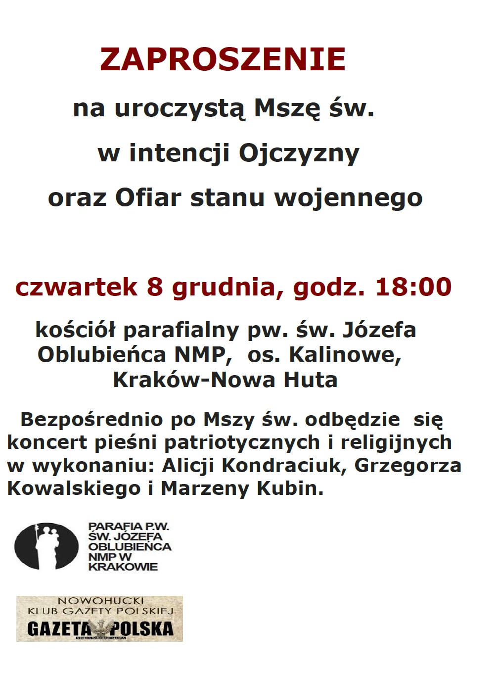 w intencji Ojczyzny oraz Ofiar stanu wojennego
