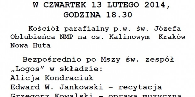 przedstawi program poetycko-muzyczny „Dotyk tęsknoty.. Strofy dla Wiesława”.