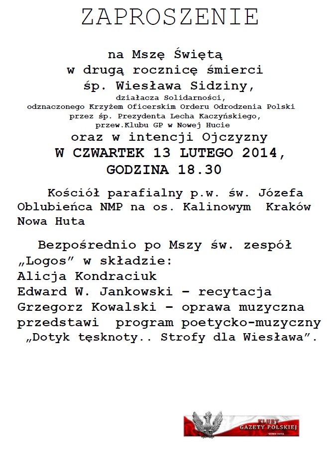 przez śp. Prezydenta Lecha Kaczyńskiego, przew. Klubu GP w Nowej Hucie