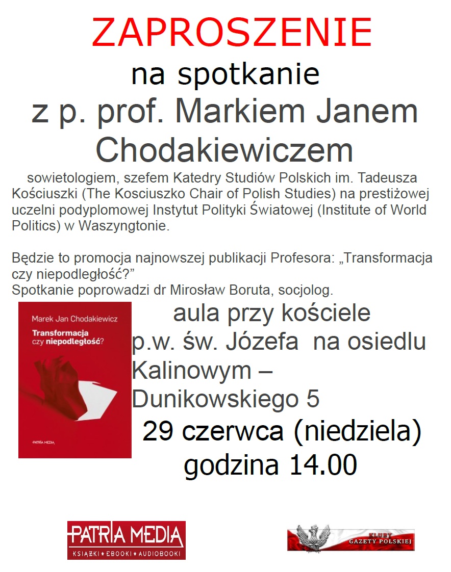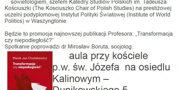 Będzie to promocja najnowszej publikacji Profesora: „Transformacja czy niepodległość?”