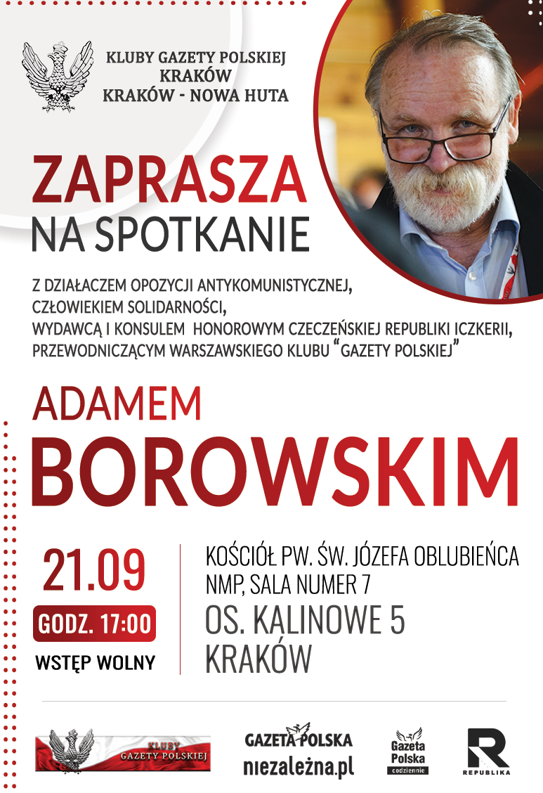 KRAKÓW | ZAPROSZENIE na spotkanie z Adamem Borowskim | 21.09