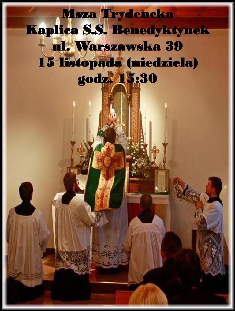 Kwidzyn – Msza Trydencka, 15 listopada, g. 15.30, Kaplica S.S. Benedyktynek ul. Warszawska 39.