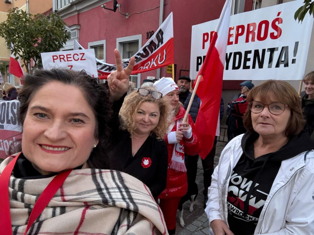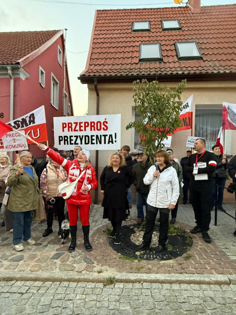 Protestujący korzystając z nagłośnienia domagali się od artystki przeprosin wobec prezydenta Karola Nawrockiego za krytyczne wypowiedzi, które opublikowała 15 sierpnia 2025 r. we własnym profilu w mediach społecznościowych.