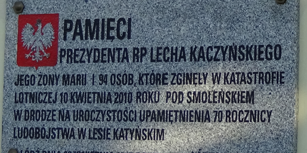 To szczególne miejsce w Łodzi, wpisało się już na trwałe w mapę patriotycznej pamięci miasta. Ufundowana staraniem łódzkich środowisk patriotycznych i niepodległościowych z inicjatywy członków Klubu Gazety Polskiej w Łodzi, tablica upamiętnia Katastrofę Smoleńską z 10 kwietnia 2010 roku. Odsłonięta 29 kwietnia 2012 roku, jako potrzeba serc łodzian pragnących złożyć hołd ofiarom jest jedynym miejscem w Łodzi, w całości im poświęconym, gdzie w każdą rocznicę mieszkańcy układają krzyż z 96 biało-czerwonych zniczy. Ten szczególny gest jest wyrazem hołdu dla elity narodu polskiego poległej w służbie Rzeczypospolitej. Znicze zapalne są zawsze, rokrocznie o godzinie 8 minut 41, to jest godzinie eksplozji samolotu. Bowiem w „pancerną brzozę” – nikt już nie uwierzy! Trzeba jednak pamiętać, że znalezienie godnego dla Tablicy miejsca nie było łatwe. Nie wszystkie kościoły były przychylne jej przyjęciu. Dlatego wyjątkowa odwaga ówczesnego proboszcza parafii Podwyższenia Św. Krzyża, księdza Wojciecha Danka, który poświęcił tablicę, zasługuje na szczególne uznanie. Tablica sąsiaduje z inną, równie ważną, oddającą hołd Stoczniowcom Wybrzeża Poległym w Walce o Prawa Człowieka. Obie będą nam zawsze przypominały, że za sprawę niepodległej, katolickiej i silnej Ojczyzny wielu najlepszych jej synów oddało swe życie. O tym nie wolno nam nigdy zapomnieć! Dozgonny szacunek i pamięć, jakie im winniśmy, mamy też obowiązek zaszczepić synom i wnukom. Mamy zadane przez największego z pośród nas, św. Jana Pawła II, – wiary i granic jej bronić za wszelką cenę, nie wahając się złożyć ofiary życia na jej ołtarzu, gdy przyjdzie ta dziejowa potrzeba. Z tego obowiązku nikt i nic zwolnić nas nie może. Pracujący dla obcych, rozsiani po świecie, czy żyjący tu w kraju – wszyscyśmy jednacy wobec Ojczyzny i obowiązków wobec niej musimy być świadomi. Zwłaszcza dziś, w czasie próby, jaką jest wszechświatowa zaraza, zobowiązani jesteśmy do obrony naszego państwa, szacunku dla wartości i tradycji, pomocy bliźnim, a nade wszystko budowy Polski, która każdemu jej synowi da bezpieczeństwo i dostatek. Tę budowę od kilku lat prowadzą elity skupione wokół Premiera Jarosława Kaczyńskiego. Jednak bez naszej pomocy nie podołają.