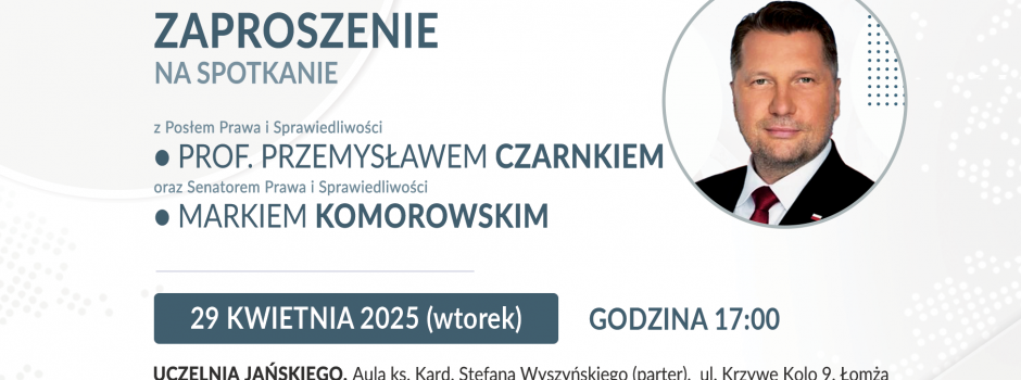 ŁOMŻA | ZAPROSZENIE 29.04 – Spotkanie z P. Czarnkiem i M. Komorowskim