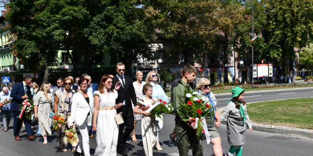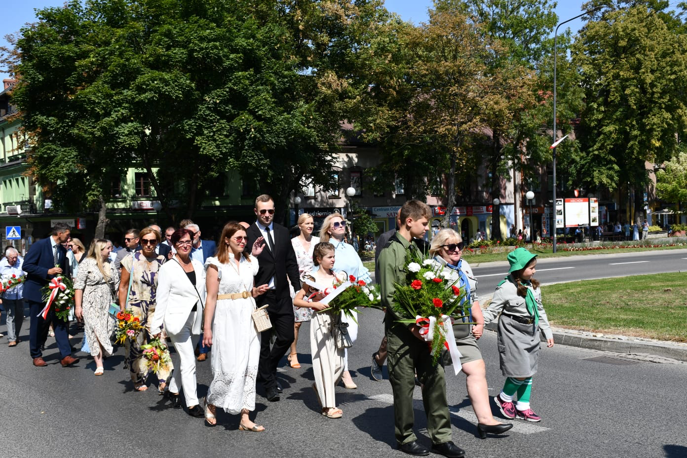Delegacja na której czele stał przewodniczący, złożyła wiązankę kwiatów pod pomnikiem Orła na rynku w Miechowie.