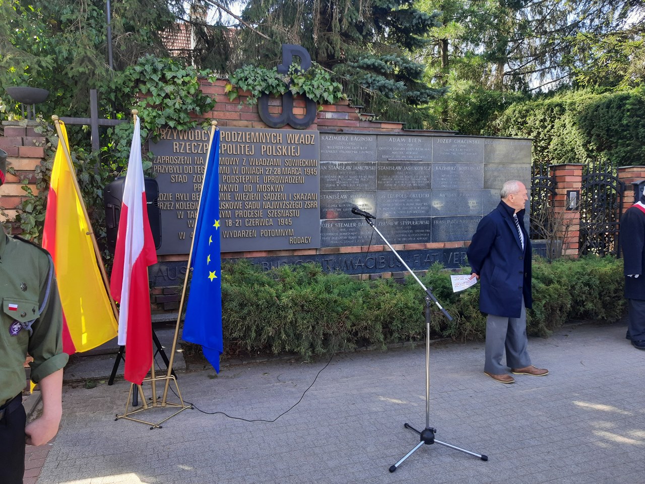 Uroczystość w Pruszkowie w miejscu i przy pomniku aresztowania podstępnie zwabionych następnie wywiezionych do Moskwy i osadzonych w więzieniu skazanych w tzw. procesie szesnastu Przywódców Państwa Podziemnego. Osobiście znałem jednego z nich Adama Bienia. Pamiętamy!