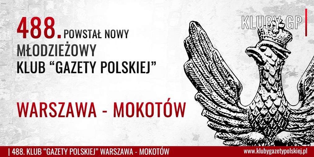 MŁODZIEŻOWY KLUB „GP” WARSZAWA MOKOTÓW – powstał 488. Klub „GP”, przewodniczącą została Agnieszka Terczyńska, e-mail: klubmokotow.gazetapolska@gmail.com