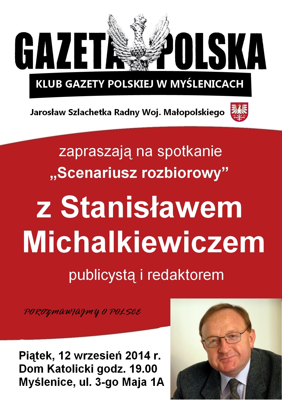 Myślenice – spotkanie z publicystą i red. p. Stanisławem Michalkiewiczem – „Scenariusz rozbiorowy”, 12 września, g. 19, Dom Katolicki, ul. 3-go Maja 1A.