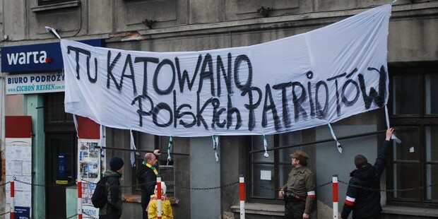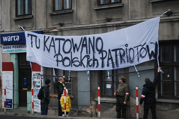1 marca przypada Narodowy Dzień Pamięci o Żołnierzach Wyklętych. Ziemia żywiecka niestety była areną wojen i nasi rodacy musieli walczyć z dwoma okupantami, niemieckim i rosyjskim. Za te poświęcenie nie otrzymali nagrody, wręcz przeciwnie. Szczególnie po 1945 roku ci którzy odważyli się podnieść rękę na sługusów Moskwy po nasze czasy byli wyszydzani i zapomniani. Dlatego kibice Górala postanowili po raz drugi uczcić ich pamięć w tym wyjątkowym dniu. Przeprowadziliśmy akcję Paczka dla Partyzanta. Samego 1 marca najpierw wraz z Narodowymi Siłami Zbrojnymi i Odziałem Strzelca Żywiec wystawiliśmy warty honorowe pod dawnym budynkiem katowni UB gdzie wiele osób było bitych i torturowanych tylko za to, że są prawdziwymi Polakami. Po zakończeniu wart odpaliliśmy race. Rozwiesiliśmy także transparent „Tu katowano polskich patriotów”. Akcja przyniosła oddźwięk, wiele osób patrzyło z zaciekawieniem i pytało co się dzieje. Tego w szkołach nie uczą. Druga część obchodów w naszym mieście to msza święta za Żołnierzy Wyklętych i uroczystości pod pomnikiem NSZ. Zebrało się tam około stu osób. Tutaj chcieliśmy zamieścić wielkie podziękowania dla Stowarzyszenia Dzieci Serc z Radziechów, a także dla pani Jadwigi Klimondy za przygotowanie lekcji historycznej i całą pracę włożoną w te obchody. Cześć i chwała bohaterom!