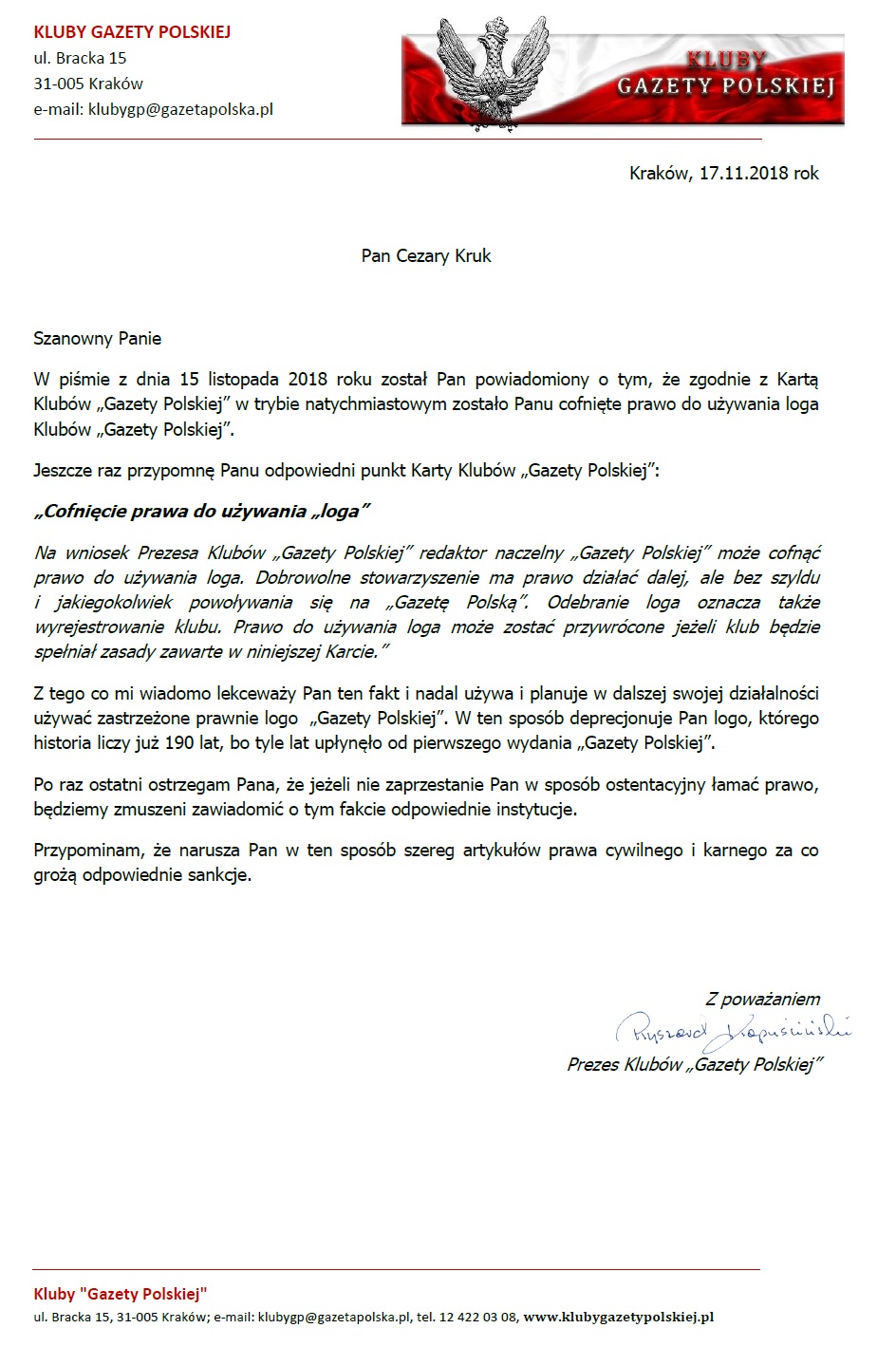 Natychmiastowe zawieszenie Klubu „Gazety Polskiej” Puławy II Natychmiastowe zawieszenie Klubu „Gazety Polskiej” Puławy II lis 17, 2018 Kluby GP Puławy II Wstecz Warszawa – Zaproszenie na spotkanie ze Stanisławem Falkowskim (22 listopada godz. 18:00) Dalej GPC: Bardzo mi zależy, by prawica była w Zagłębiu prawdziwą siłą (Klub „GP” Sosnowiec)