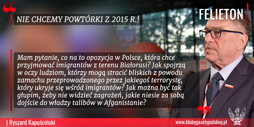 W środę w Paryżu rozpoczął się proces oskarżonych o zamachy terrorystyczne z listopada 2015 r. W atakach na stadion piłkarski Stade de France, kilka restauracji oraz salę koncertową Bataclan zginęło 130 osób. – Nigdy jeszcze w najnowszej historii Francji nie istniały tak silne związki między bezpośrednimi zagrożeniami na terytorium francuskim a tymi, które mnożą się poza naszymi granicami – mówił Jean-Yves Le Drian, minister obrony Francji. We wtorek spotkali się premierzy Czech, Słowacji oraz kanclerz Austrii, którzy na konferencji prasowej oświadczyli, że sprzeciwiają się nielegalnej migracji i nie chcą powtórki z 2015 r. – Widzimy teraz nową sytuację, w której reżim białoruski zaczyna wykorzystywać migrację jako broń hybrydową – oświadczył szef czeskiego rządu i stwierdził, że należy powstrzymać migrację z Białorusi. Mam pytanie, co na to opozycja w Polsce, która chce przyjmować imigrantów z terenu Białorusi? Jak spojrzą w oczy ludziom, którzy mogą stracić bliskich z powodu zamachu przeprowadzonego przez jakiegoś terrorystę, który ukryje się wśród imigrantów? Jak można być tak głupim, żeby nie widzieć zagrożeń, jakie niesie za sobą dojście do władzy talibów w Afganistanie?