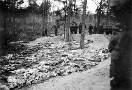 (Masowe groby w lesie katyńskim; domena publiczna)