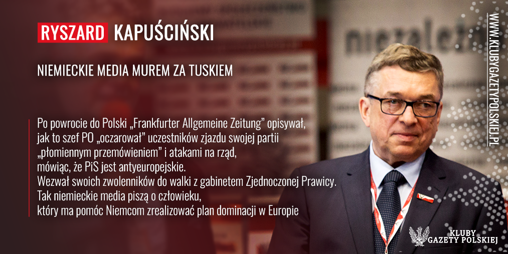 Zeitung” opisywał, jak to szef PO „oczarował” uczestników zjazdu swojej partii „płomiennym przemówieniem” i atakami na rząd, mówiąc, że PiS jest antyeuropejskie. Wezwał swoich zwolenników do walki z gabinetem Zjednoczonej Prawicy. Tak niemieckie media piszą o człowieku, który ma pomóc Niemcom zrealizować plan dominacji w Europie.