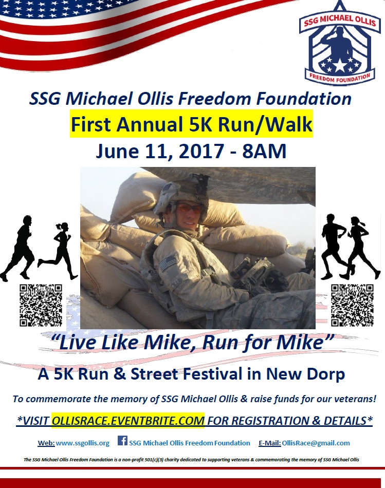 FIRST ANNUAL SSG MICHAEL OLLIS MEMORIAL 5K RUN & STREET FESTIVAL bo tak oficjalnie nazywa się impreza odbędzie w niedzielę 11 czerwca  w godzinach 8:00 – 12:00 na New Dorp Lane na Staten Island, Nowy Jork. Bieg na 5 km wystartuje o godz. 9:00 a jego trasa wiedzie wzdłuż kolejki Staten Island Railway (SIR) pomiędzy ulicami Beach Avenue i Jefferson Avenue. Po biegu nastąpi ceremonia wręczenia nagród i uliczny festiwal pomiędzy ulicami New Dorp Plaza i 10th Street. Zapisy odbywają się w internecie na stronie: ollisrace.eventbrite.com – koszt uczestnictwa to $35 dolarów lub inna, większa dotacja.