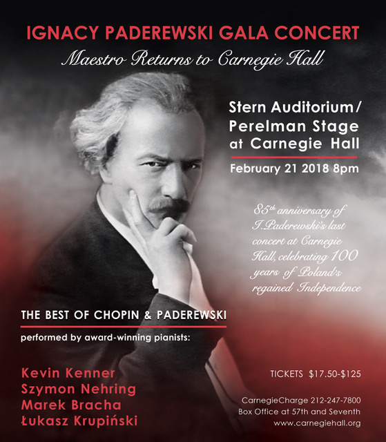 Już za tydzień, 21 lutego, w Stern Auditorium w Carnegie Hall w Nowym Jorku odbędzie się uroczysta gala w hołdzie wielkiemu artyście i patriocie – Ignacemu Janowi Paderewskiemu – w 85. rocznicę jego ostatniego koncertu w Carnegie Hall. Gala, organizowana przez Gazeta Polska Community of America, zainauguruje na wschodnim wybrzeżu USA obchody 100-lecia odzyskania przez Polskę niepodległości. Z tej wyjątkowej okazji przybliżamy historię działalności Ignacego Paderewskiego za Oceanem i jego ogromnej roli w środowisku Polonii Amerykańskiej.