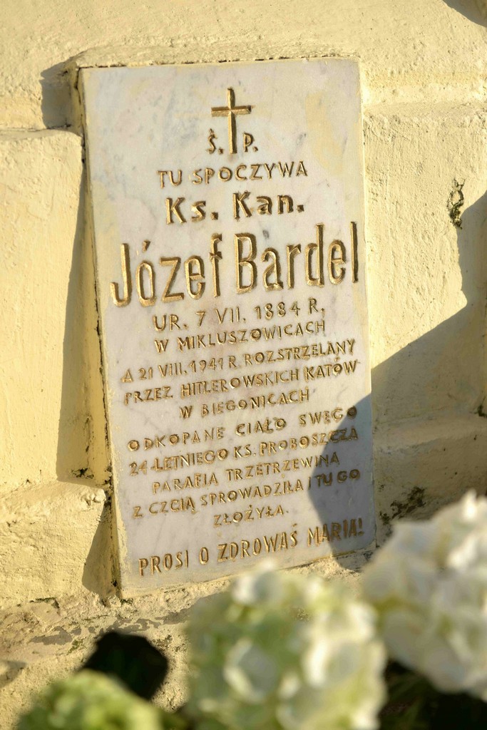 Sługa Boży Józef Bardel 07.07.1884-21.08.1941 Syn Franciszka, rolnika, i Anny z domu Majta. Urodził się 7 VII 1884 r. w Mikluszowicach. Szkołę podstawową ukończył w miejscowości rodzinnej, gimnazjum w Bochni. Teologię studiował w Tarnowie i 29 VI 1909 r. przyjął święcenia kapłańskie z rąk bpa Leona Wałęgi. Jako wikary od 1 VIII 1909r. pracował w Gręboszowie, od 1 VIII 1912 r. w parafii w Czchowie. W 1913 r. był administratorem w Złotej, a od 30 VII 1914 r. wikarym w Tuchowie. Następnie 1 IV 1915 r. został wikariuszem w Lisiej Górze. Tutaj 25 V 1915r., po śmierci ks. W. Bryndzy, został administratorem. Od 29 I 1916r. był administratorem w Porębie Radlnej. 15 III 1917 r. objął duszpasterstwo w Trzetrzewinie. W 1925 r. Trzetrzewina została podniesiona do rangi parafii i ks. Bardel został pierwszym jej proboszczem. W 1926 r. sprawił dla parafii nowe dzwony. W trakcie swej posługi został uhonorowany godnością kanonika. Był znakomitym wychowawcą a jego wychowankiem był między innymi ks. prof. Bolesław Kumor.