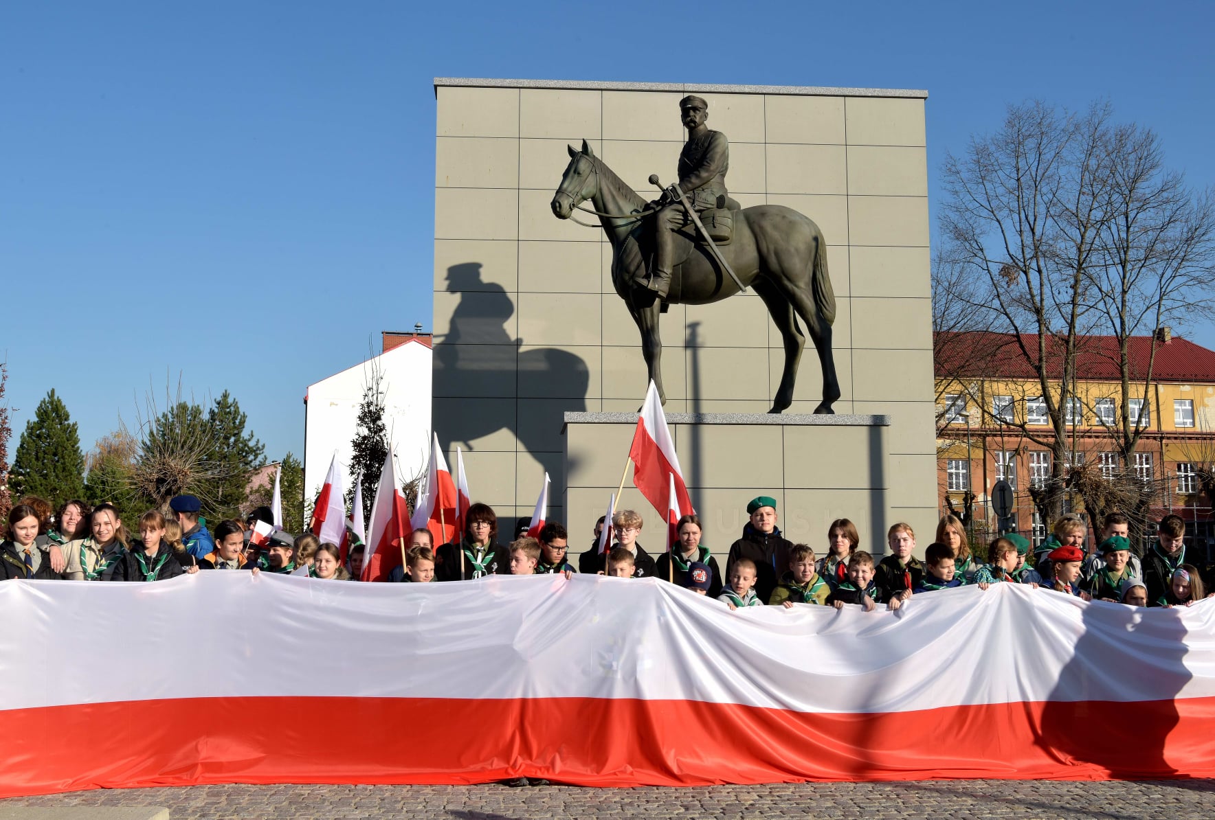 Na zakończenie uroczystości parlamentarzyści, samorządowcy i przedstawiciele wielu środowisk i organizacji złożyli wieńce i wiązanki kwiatów pod pomnikiem Marszałka Józefa Piłsudskiego, jednego z Ojców naszej Niepodległości.