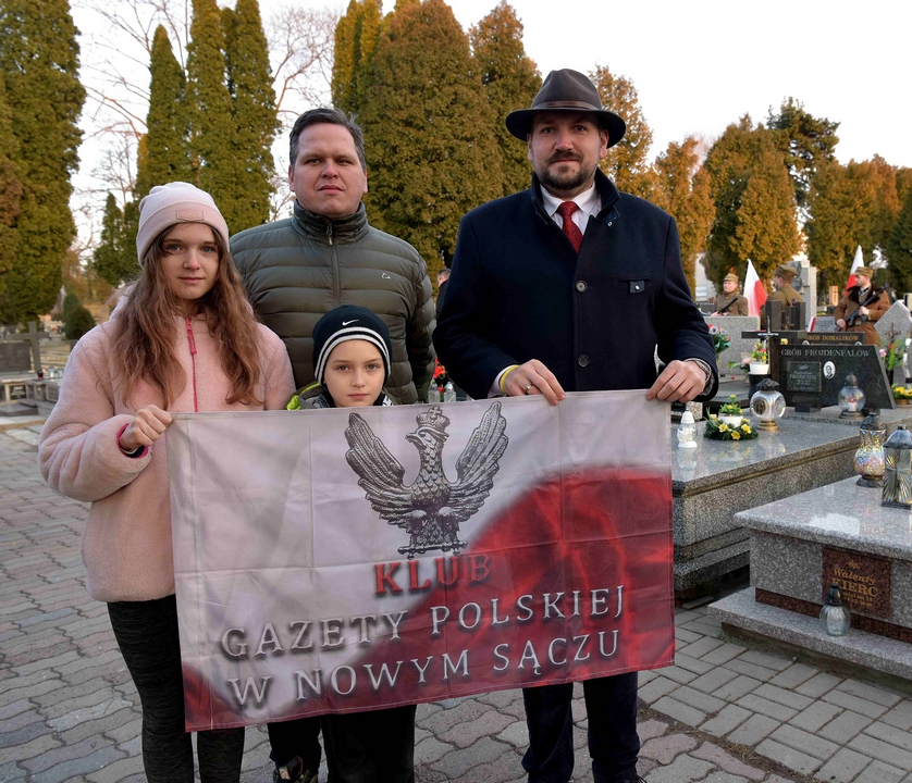 Delegacja naszego Klub Gazety Polskiej w Nowym Sączu: wiceprzewodniczący klubu Jarosław Jakubowski, Michał Petryszak z dziećmi, Jozef Horowski, Robert Bestyński i Sylwester Adamczyk, Jerzy Basiaga wzięła udział w uroczystości poświęcenia na sądeckim cmentarzu komunalnym grobowca-pomnika partyzantów oddziału Żandarmeria Polskiej Podziemnej Armii Niepodległościowców poległych w walce z komunistami w 1949 roku.