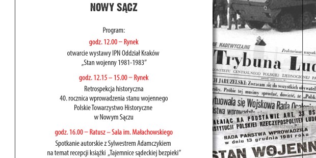 NOWY SĄCZ im. Jana Olszewskiego | ZAPROSZENIE na 40 rocznicę wprowadzenia stanu wojennego oraz spotkanie autorskie z Sylwestrem Adamczykiem 13 grudnia