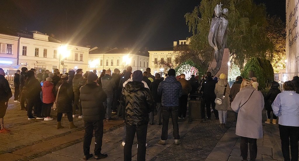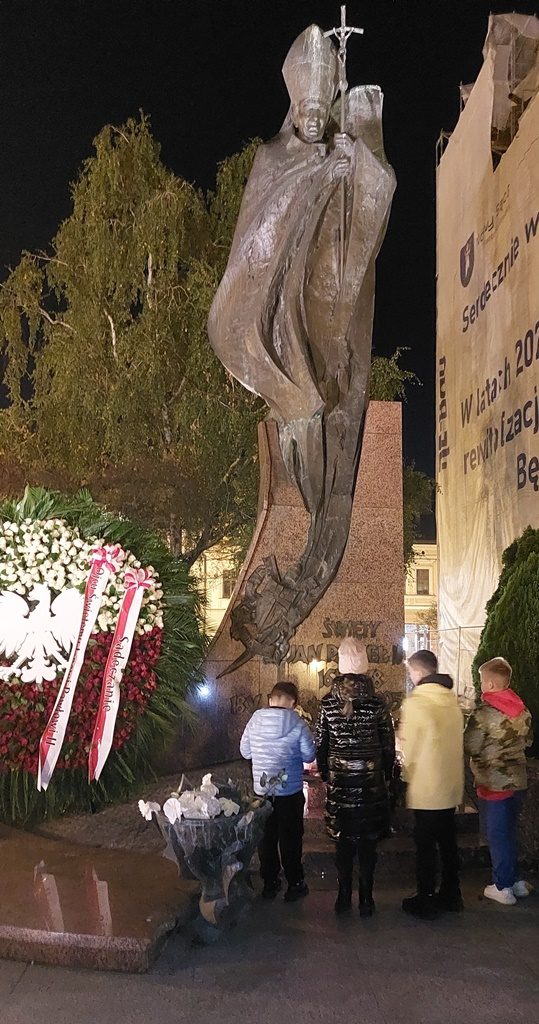 W rocznicę wyboru Karola Wojtyły na Papieża 16 października spotkaliśmy się razem z wieloma sądeczanami przy jego pomniku o godz. 20.30 na wspólnym różańcu.