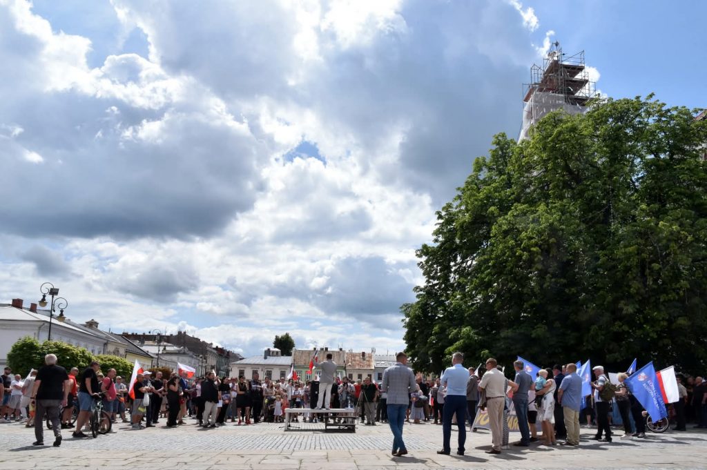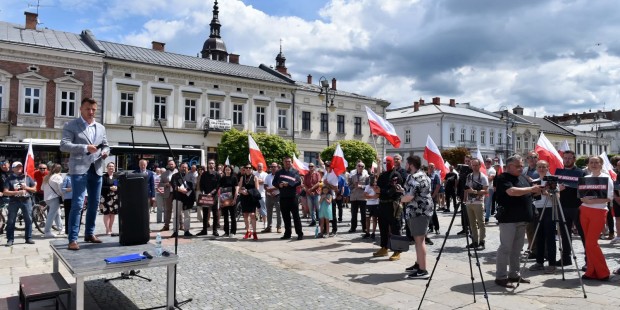 W sobotę 19 lipca o godzinie 12.00 sądecki Rynek, podobnie jak centra innych 80. miast w Polsce, wypełnił się Polakami w tym naszymi klubowiczami zatroskanymi o los naszej Ojczyzny stojącej w obliczu fundamentalnego zagrożenia zalewem niekontrolowanej imigracji obywateli Afryki i Bliskiego Wschodu, których na siłę chce się pozbyć Europa Zachodnia, a w szczególności Niemcy.