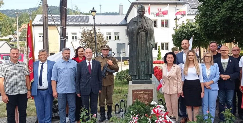 Uroczystości rozpoczęliśmy na cmentarzu parafialnym w Nawojowej gdzie po Apelu poległych w obecności, ministra Antoniego Macierewicza złożyliśmy kwiaty pod obeliskiem upamiętniającym Żołnierzy Wyklętych oraz pod mogiłą dowódcy oddziału – kpt. Stanisława Pióro. Następnie oddaliśmy hołd i złożyliśmy kwiaty i znicze pod pomnikiem ks. Władysława Gurgacza w Łabowej.