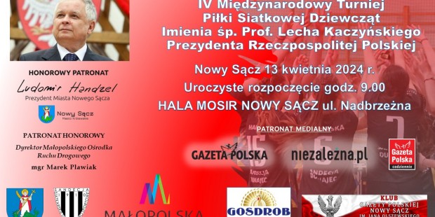 Nowy Sącz im. Jana Olszewskiego | ZAPROSZENIE 13.04 – IV Międzynarodowy Turniej siatkarski im. śp. Prof. Lecha Kaczyńskiego Prezydenta RP