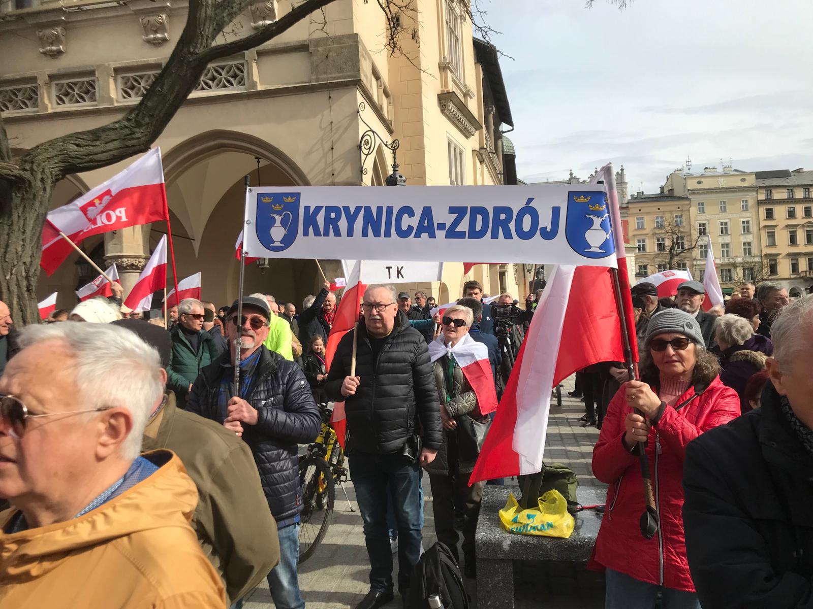 16-03-2024 r. Kraków. Członkowie naszego Klubu z Krynicy-Zdrój wzięli udział w Proteście Wolnych Polaków na krakowskim Rynku.