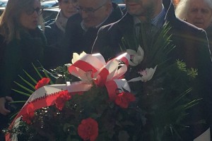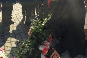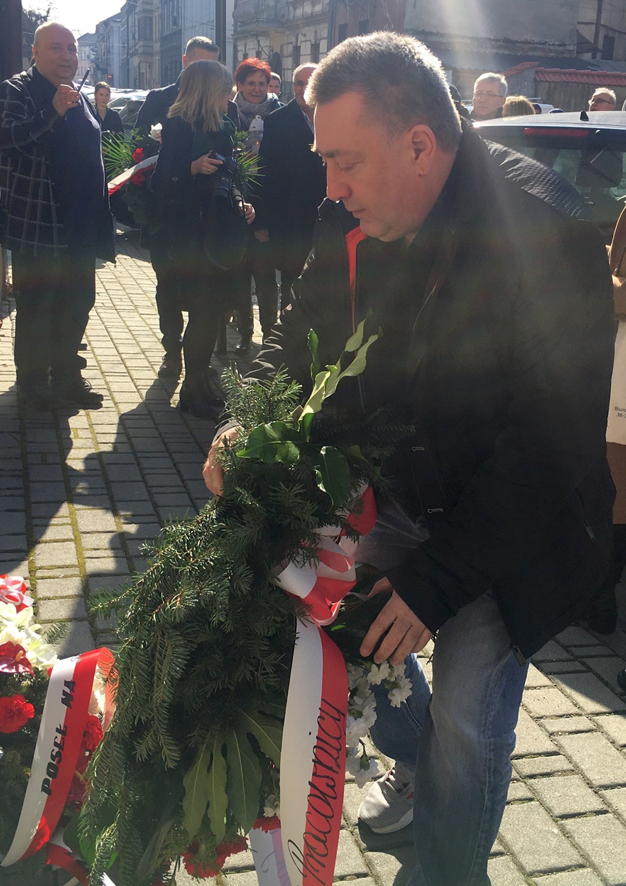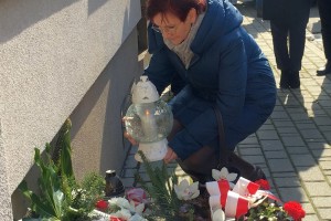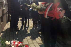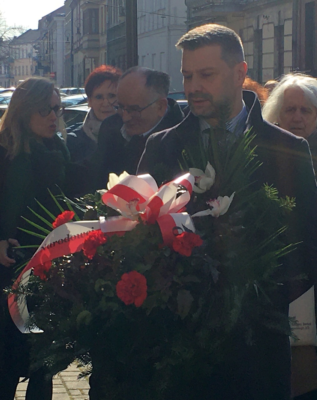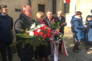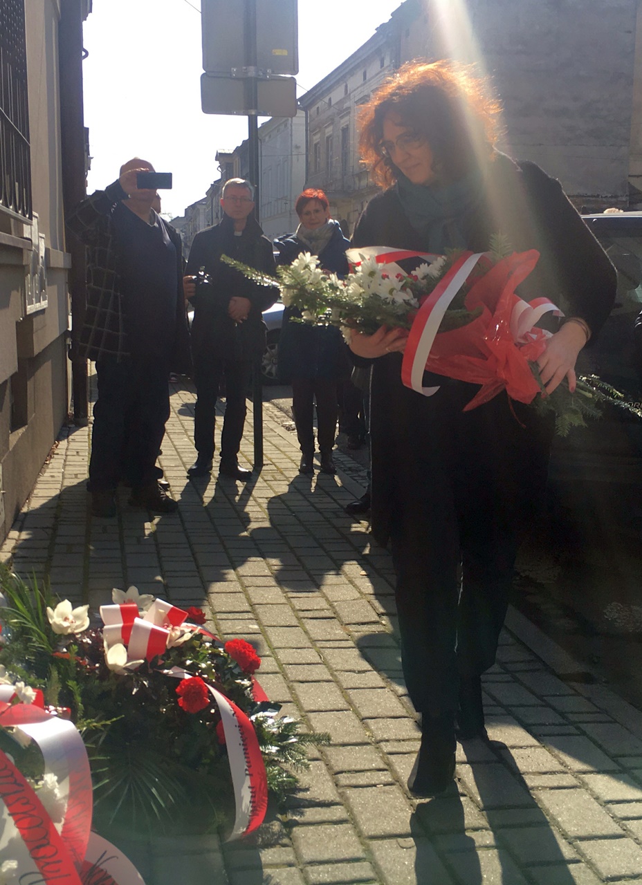 Po zakończeniu uroczystości otwarcia wystawy, wszyscy udali się pod, znajdującą się nieopodal na budynku Bursy Księży Jezuitów, tablicę poświęconą ks. Gurgaczowi, gdzie złożone zostały wiązanki kwiatów i zapalone znicze. Tak rozpoczęły się obchody Narodowego Dnia Pamięci Żołnierzy Wyklętych w Nowym Sączu.