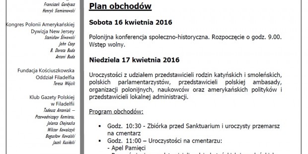 Polonia w Stanach Zjednoczonych pragnie uczcić pamięć ofiar, oraz w łączności z Rodakami w kraju wyrazić naszą solidarność z rodzinami oraz tymi, którzy wytrwale dążą do poznania pełnej prawdy o tej Katastrofie.