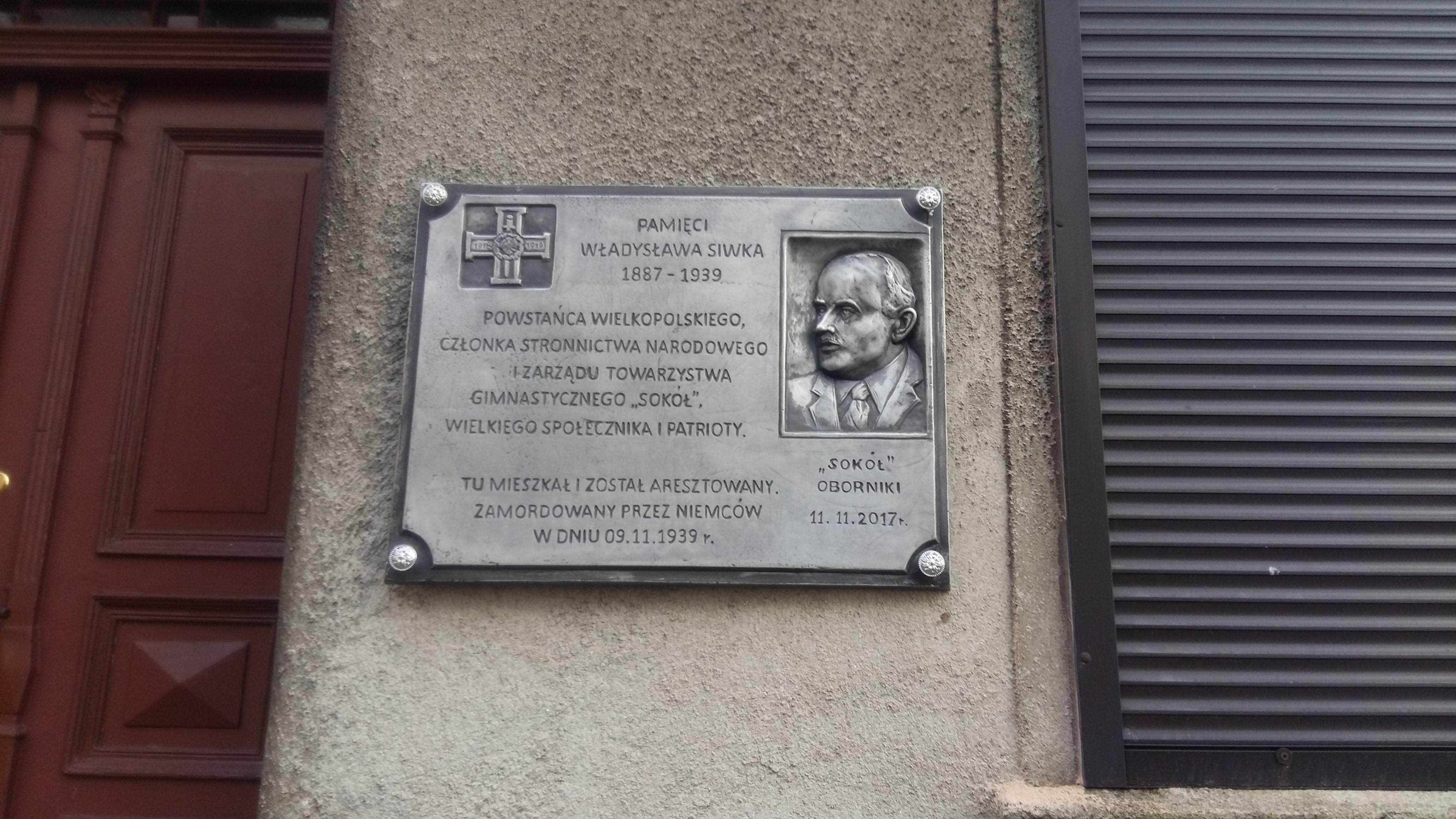 Dnia 12 listopada 2017 r., została odsłonięta tablica pamięci Władysława Siwka, powstańca wielkopolskiego, członka Stronnictwa Narodowego oraz aktywnego działacza przedwojennego Towarzystwa Gimnastycznego Sokół w Obornikach.