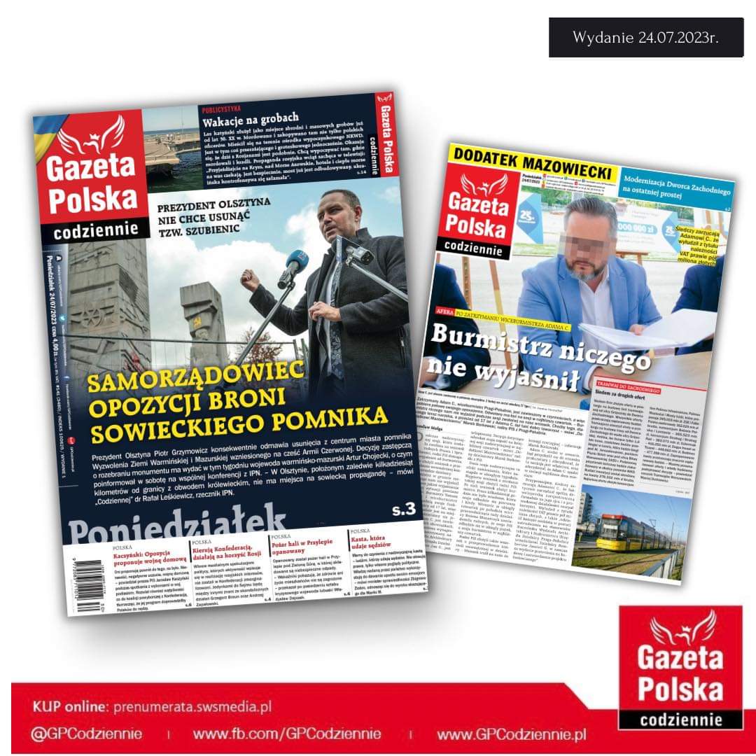 Tematem wiodącym wydania GP Codziennie, był aspekt rozbiórki komunistycznego pomnika w Olsztynie.
