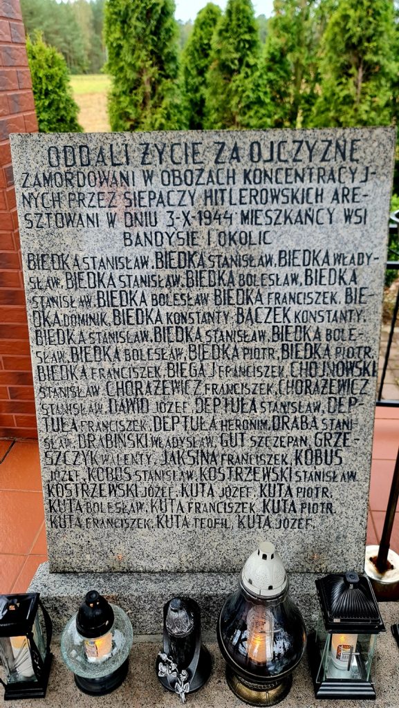Na upamiętnienie organizowane przez Sołtysa, zaprosił, dawny mieszkaniec Bandysi, Eugeniusz Lenda, obecnie mieszkający w Olsztynie. Brat Dziadka Eugeniusza Lendy zginął z rąk hitlerowców.