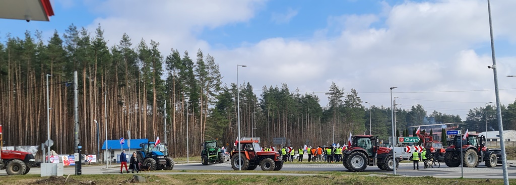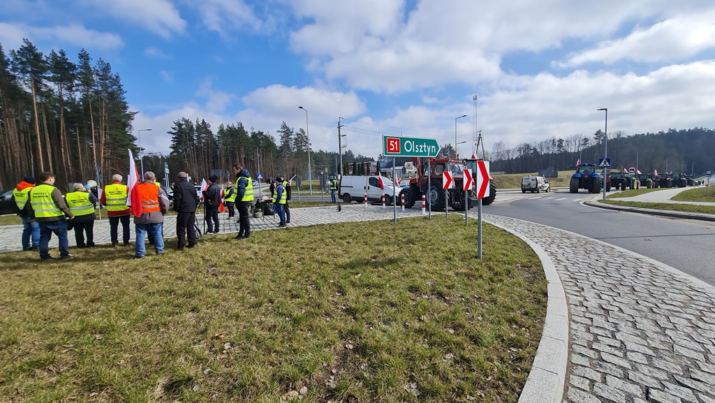 We środę (20 marca) miał miejsce kolejny, ogólnopolski strajk rolników. Według planów zablokowane miały zostać drogi w ponad 500 miejscach – także na Warmii i Mazurach. Jednym z takich miejsc było rondo na DK51, leżące na styku Olsztyna z Dywitami (rondo Sterowców).