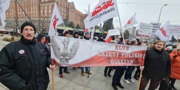 Przewodniczący Zarządu Regionu Warmińsko-Mazurskiego NSZZ Solidarność Józef Dziki oraz z-ca przewodniczącego Krzysztof Krzyżaniak, zaprosili Klub Gazety Polskiej OLSZTYN do wsparcia protestu. Licznie stawiliśmy się, aby ramię w ramię wspierać działania Solidarności.
