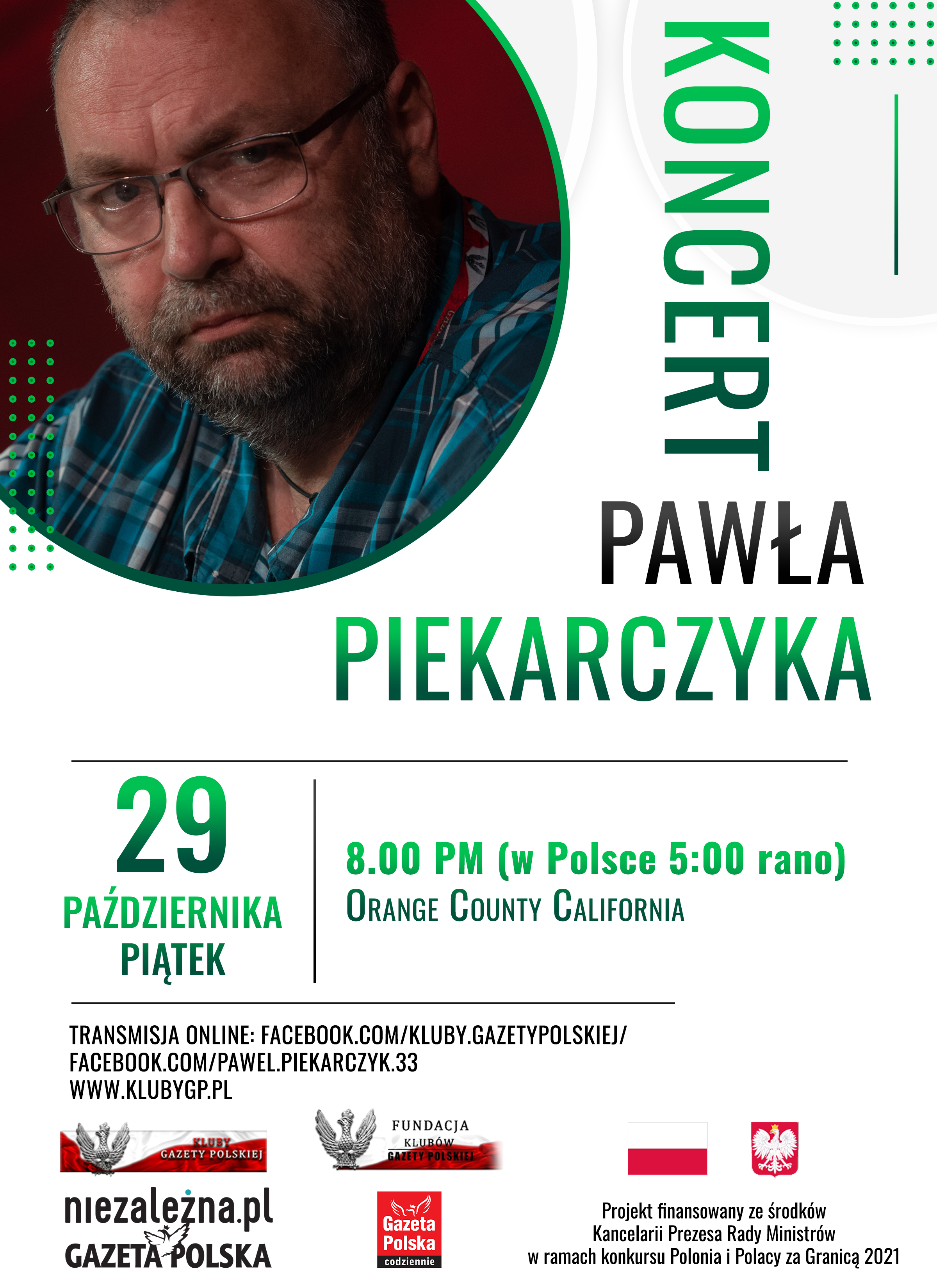 W piątek 29 października zapraszamy na koncert i spotkanie z Pawłem Piekarczykiem.