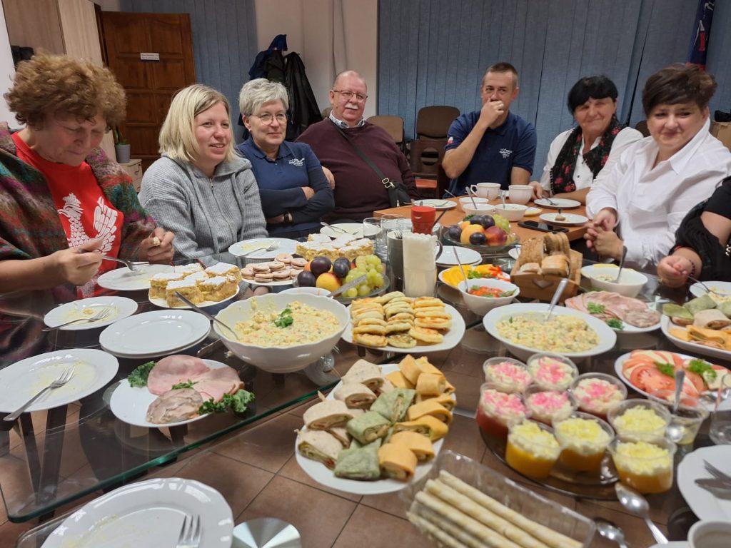 Podziękowania kieruję do klubowiczów Grażynki i Sławka Nelców, którzy zaprosili profesorską parę na różaniec i mszę św do pięknego kościoła w Przeciszowie. Dziękuję również za przygotowanie poczęstunku Danusi Maciewicz, Ewuni Rola, Joasi Ropel. Serdecznie dziękuję Państwu Duda za wizytę, dyskusję o Ojczyźnie i tak trudnych sprawach związanych z JEJ przyszłościa…To było piękne spotkanie, które na długo pozostanie w naszej pamięci.