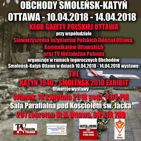 Smoleńsk-Katyń Ottawa w dniach 10.04.2018 – 14.04.2018 wystawę: