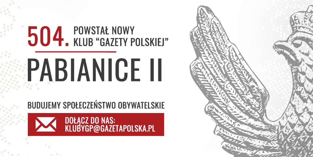 Pabianice II – powstał 504. Klub „Gazety Polskiej”. PABIANICE II – powstał 504. Klub „Gazety Polskiej”. Przewodniczącą została Nadia Tądel, tel. +48 690 013 014, e-mail: klubgppabianice2@gmail.com sty 31, 2024 Kluby GP KlubyGP, Pabianice II, Wiadomosci, Wydarzenia Tagged Pabianice II Wstecz KRAKÓW | ZAPROSZENIE 03.02 – Protest Wolnych Polaków na Placu Matejki Dalej TYDZIEŃ W KLUBACH „GAZETY POLSKIEJ” | Chwała bohaterom z 1863 roku