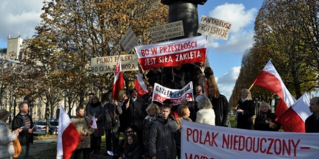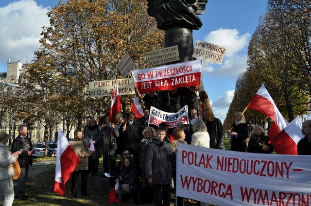 z powodu  usunięcia ich utworów z kanonu lektur obowiązkowych w gimnazjum (Pan Tadeusz) oraz okrojeniu tychże narodowych autorów z lektur licealnych.