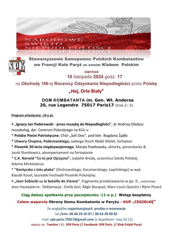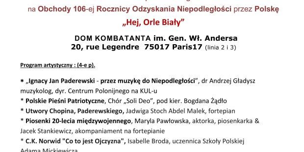 na Obchody 106-ej Rocznicy Odzyskania Niepodległości przez Polskę