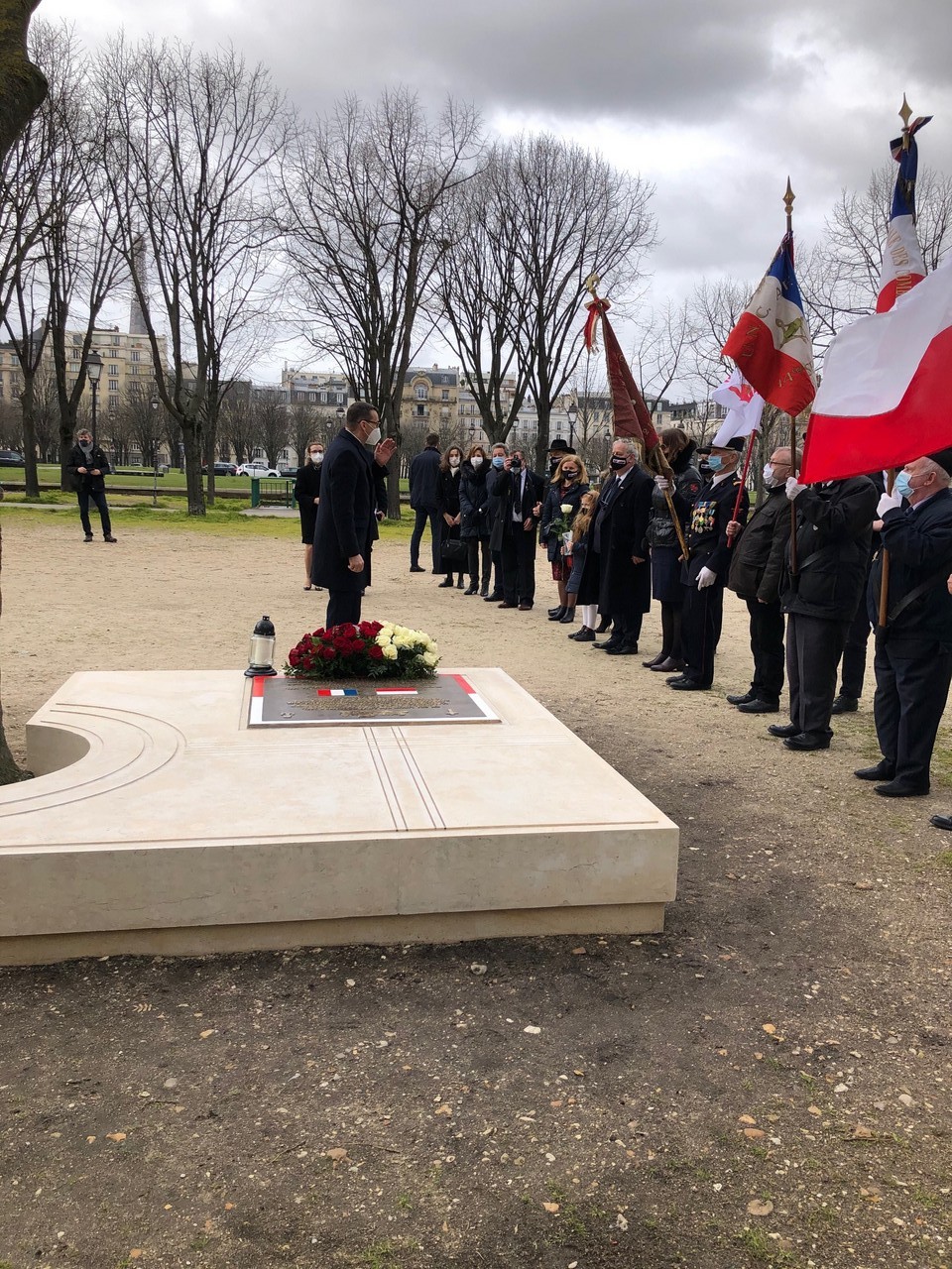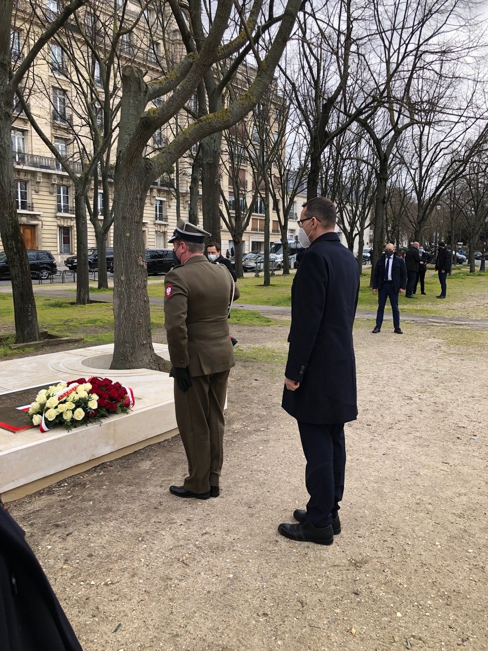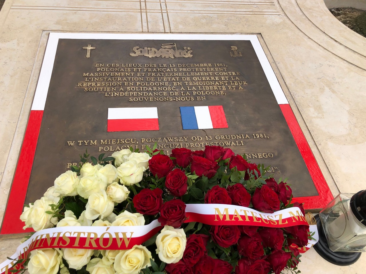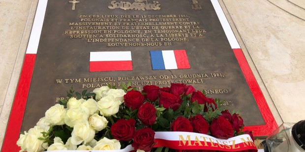 Jednodniową wizytę w Paryżu premier rozpoczął od złożenia kwiatów pod płytą „Solidarności”, upamiętniającą masowe demonstracje Polaków i Francuzów w grudniu 1981 r. na znak sprzeciwu wobec wprowadzenia stanu wojennego w Polsce oraz poparcia dla NSZZ „Solidarność”.